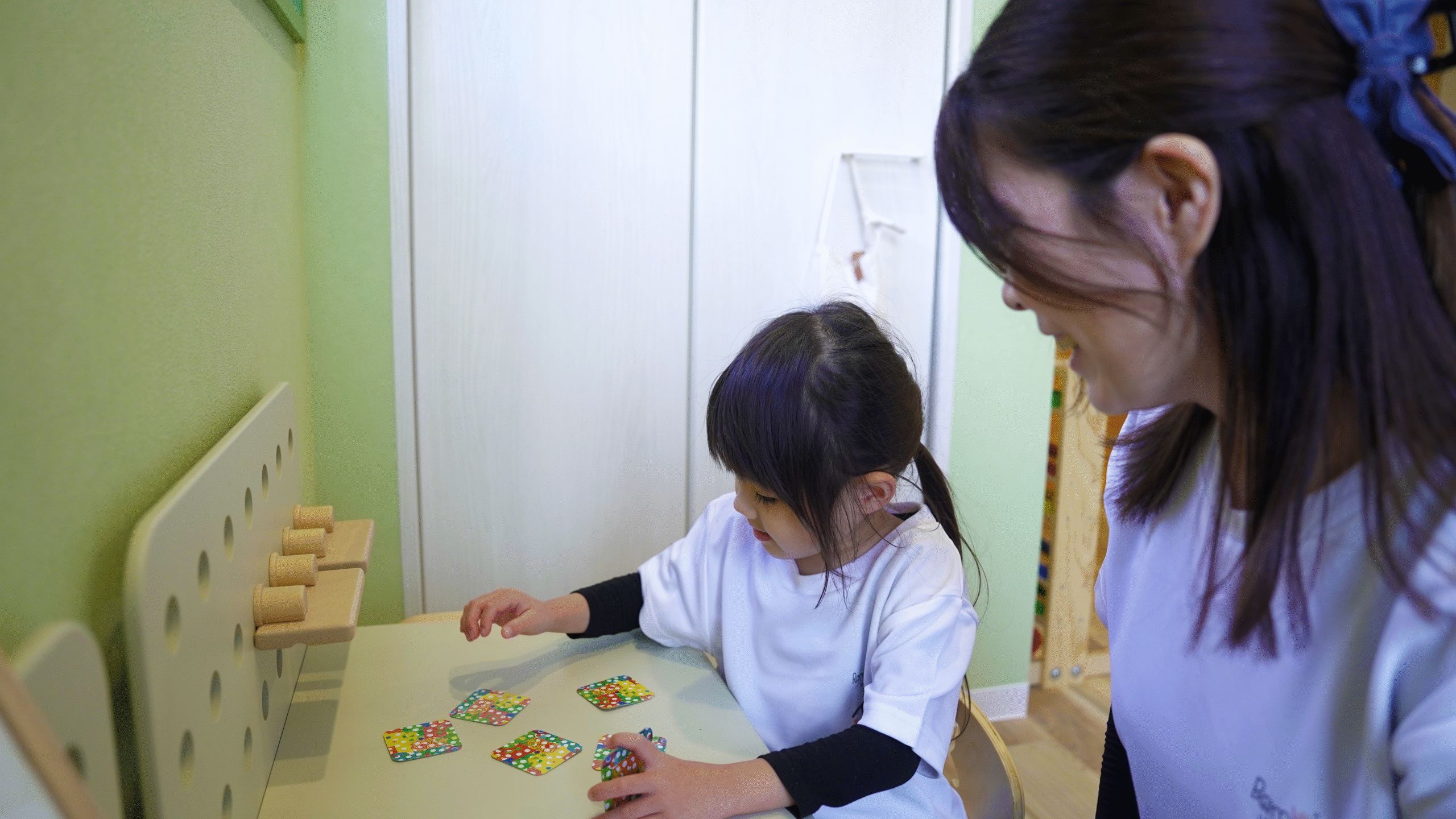個別療育では、一人ひとりに合わしせ、モンテッソーリ環境・指先活動・着座での微細運動 を中心に支援します。子どもが やりたい活動を自分で選び、自分のペースで「できた!」を積み重ねられる時間を大切にしています。
